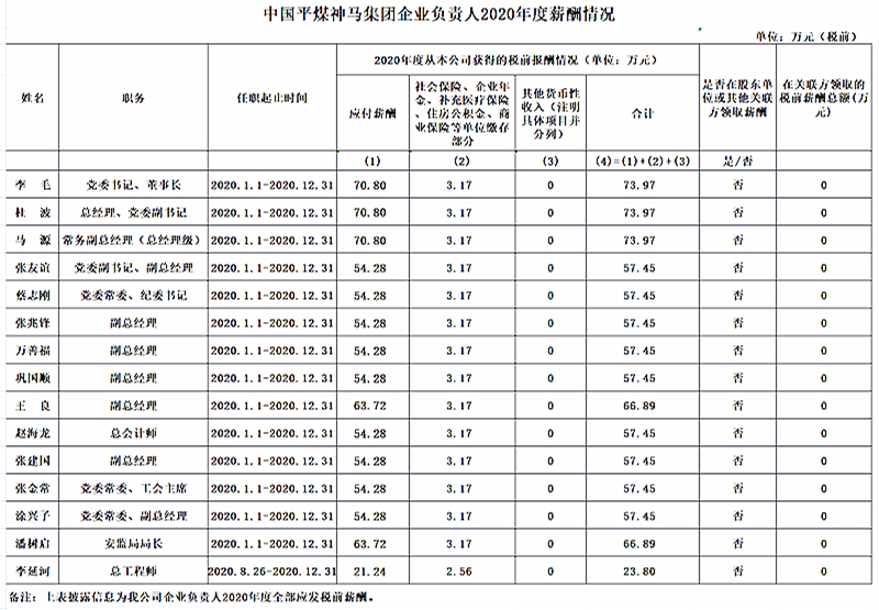 2020年度集团领导班子薪酬信息