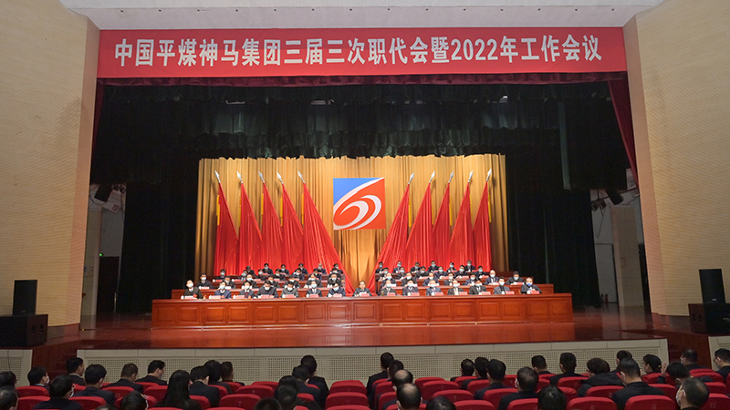 杜波作工作报告。他说,过去的一年,在省委、省政府的正确领导下,我们坚持以习近平新时代中国特色社会主义思想为指导,完整、准确、全面贯彻落实新发展理念,瞄准建设世界一流企业,牢牢把握“六个坚持”,紧紧扭住质量效益,稳中求进、稳中求变、稳中调优、稳中提效,综合实力实现大跃升,迎来新一轮大发展,在“十四五”开局之年交出了一份成色十足、厚重提气的成绩单。办成了五件大事。一是科学描绘“十四五”发展蓝图,吹响了迈向世界一流的嘹亮号角。二是利税总额历史性突破百亿元大关。三是在岗职工总数控制在13万人以内,人力资源优化取得重大突破。四是转型发展三年行动圆满收官,开辟了向新材料企业转型的广阔空间。五是信息融合共享运营中心、招标采购中心等数字化平台成功搭建,全面驶入数字化建设“快车道”。办成了五件难事。一是统筹发展与安全,企业效益大幅增长,安全形势总体平稳。二是慎终如始抓好常态化疫情防控,全力应对汛情挑战和大风严寒等极端天气,企业生产经营正常有序。三是获得平顶山深部煤炭资源储量12.55亿吨,长达16年的深部矿井开采历史遗留问题取得突破性进展。四是有效化解各类债务风险,资产负债率降至10年来最好水平。五是成功攻克己二腈、区熔硅等一批“卡脖子”难题,一举扭转关键技术长期受制于人的被动局面。办成了五件实事。一是在岗职工人均工资实现稳步增长。二是“井下空调”“卡轨车”等一批先进适用装备投入使用,井下作业环境显著改善。三是煤矿职工井下班中餐标准上调,在全集团范围内发放中秋实物福利、元旦专属礼盒,职工幸福感、获得感更加充实。四是湖岸新城一期封顶、二期启动,职工高品质新居梦成为现实。五是在河南通服、东鑫焦化等单位开辟就业岗位近500个,为职工提供更多职业选择。