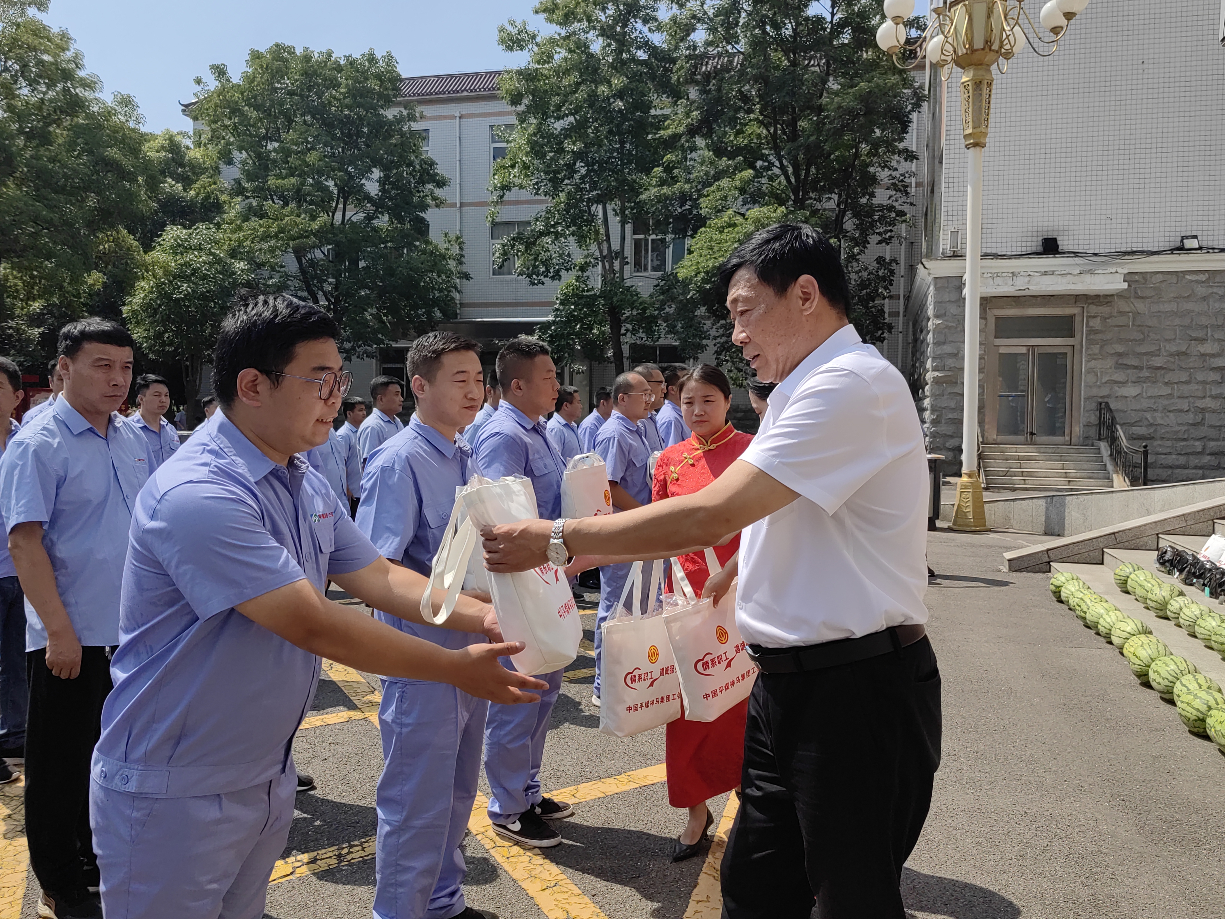 7月18日上午,集团党委副书记、工会主席张金常带领集团工会有关部门负责人先后到九矿、十三矿开展“工会送清凉、防暑保安康”活动,为干部职工送去清凉茶、西瓜等防暑降温物资,向炎热天气下奋战在一线的广大干部职工表示崇高敬意和由衷感谢。