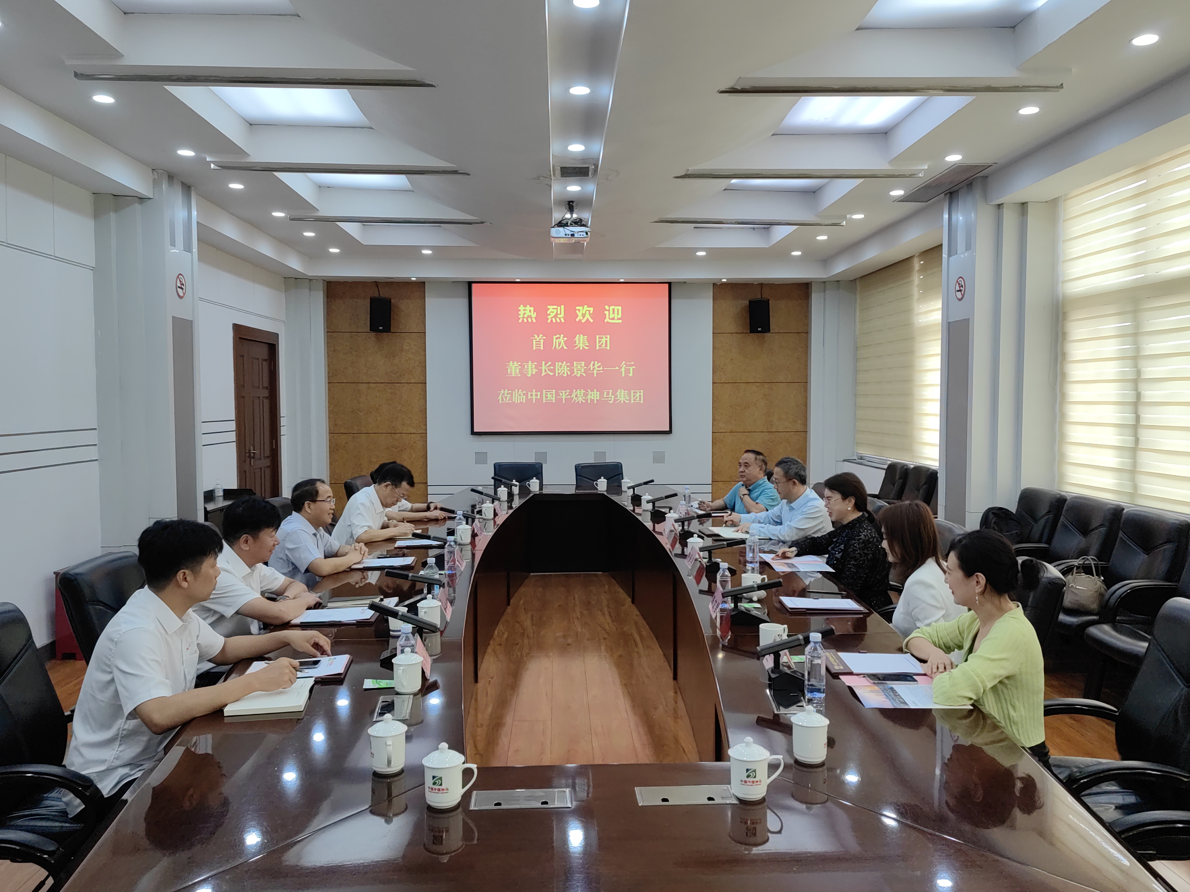 9月1日上午,首欣集团董事长陈景华、党委书记陈文君一行到集团走访。在信息楼四楼会议室,集团党委书记、董事长李毛会见客人一行。双方就加强新能源发电等领域务实合作,进行友好会谈。