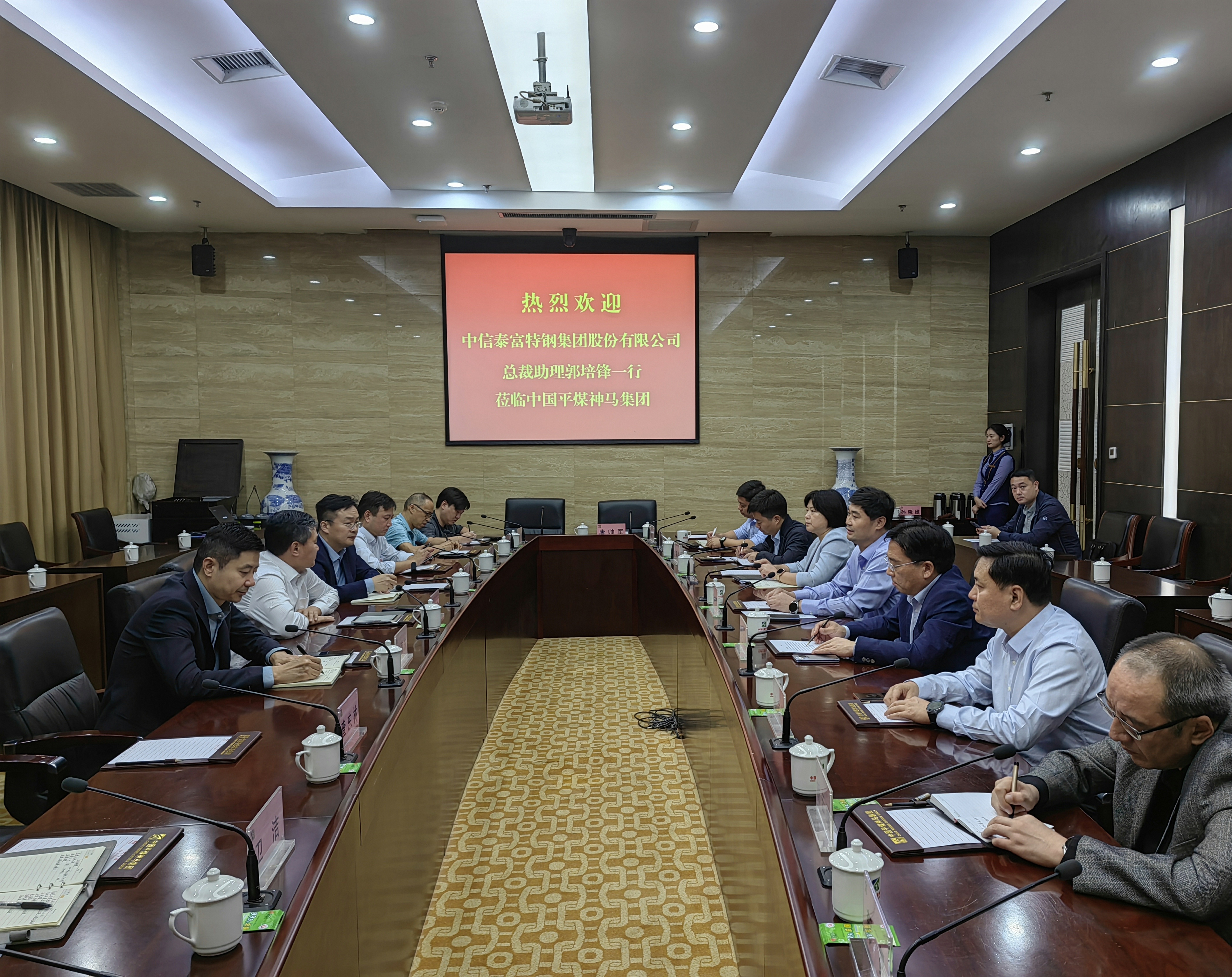 会谈中,郭培锋、王存璘介绍了近期国内钢铁行业形势和各自企业发展情况。希望与集团进一步加强沟通,在更宽领域、更深层次、更高水平上开展务实合作,加强技术交流,发挥各自优势,实现市场共享、信息共享,推动煤钢企业实现更高质量发展。